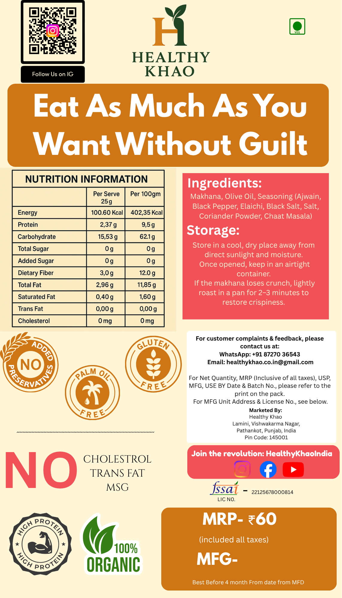 Our makhanas stay fresh and crunchy for up to 4 months, thanks to careful roasting and air-tight packaging.